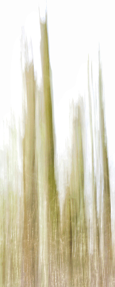 After years spent documenting and photographing the intricate grounded world of fungi; I have evolved, and my motivation has shifted from the microscopic precision of the forest floor to the exploration of trees. I use Intentional Camera Movement to capture the complex textures and mood of trees, both groups and individual. Each piece in this series prioritises the effect of the ethereal, over literal detail, with the aim of creating ‘living paintings’ that show the quiet, constant motion of the natural world.